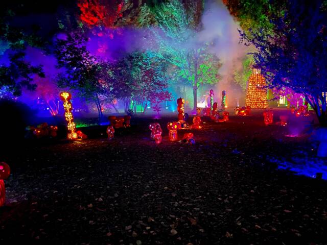 Enjoy themed scenes featuring dinosaurs, dragons, pirates, and more, plus synchronized light shows every 30 minutes. New this year: a dance party zone, interactive Glow Pass, inflatable maze, and seasonal food and drinks — including DIY s’mores.