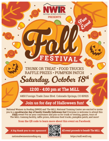 Celebrate the season with an afternoon of fall fun hosted by National Women in Roofing! Bring the whole family for festive activities, community connection, and autumn cheer at the National Mill Training Center. It’s a free event filled with good company and seasonal spirit — everyone’s welcome!